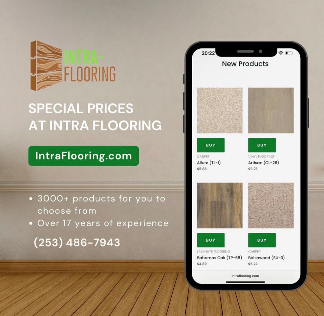 Intra Flooring Store has been proudly serving the State of Washington since 2004. We offer a wide variety of Hardwood, Carpet, Laminate, Vinyl flooring based on our client’s needs & preferences.